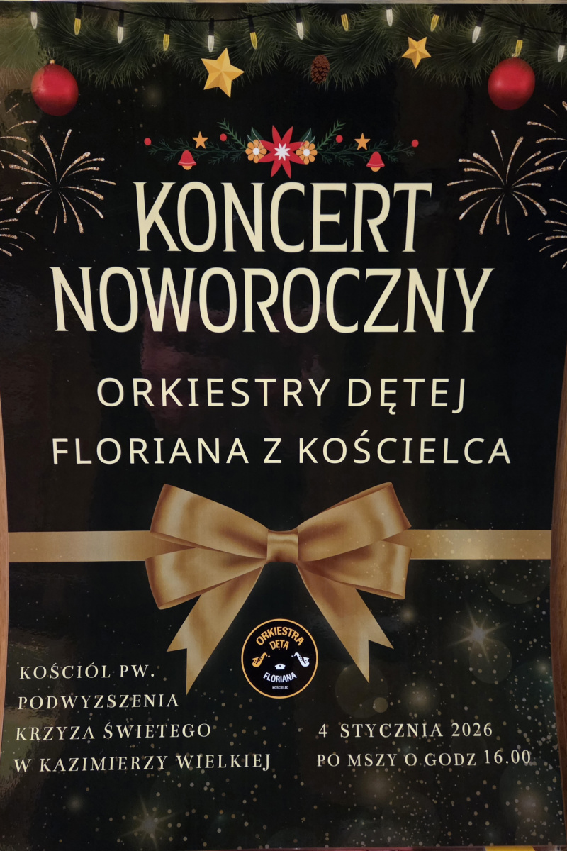 W dniu dzisiejszym w naszej parafii odbył się koncert noworoczny Orkiestry Dętej „Floriana” z Kościelca. Wydarzenie zgromadziło licznych parafian i gości, a zaprezentowany repertuar wprowadził uczestników w podniosły, noworoczny nastrój.