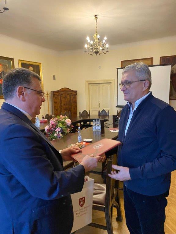 27 stycznia Ks. Proboszcz i p. Marek Żurek zostali zaproszeni do domu Długosza na ul. Kanoniczą 25. Gdzie znajduje się Rektorat Uniwersytetu Jana Pawła II w Krakowie. W Sali senackiej ufundowanej przez Królową Jadwigę Ksiądz Rektor prof. dr hab. Rober Tyrała wręczył list gratulacyjny i podziękowanie za sponsorowanie kolejnej edycji Debaty Oksfordzkiej dla licealistów z Polski.